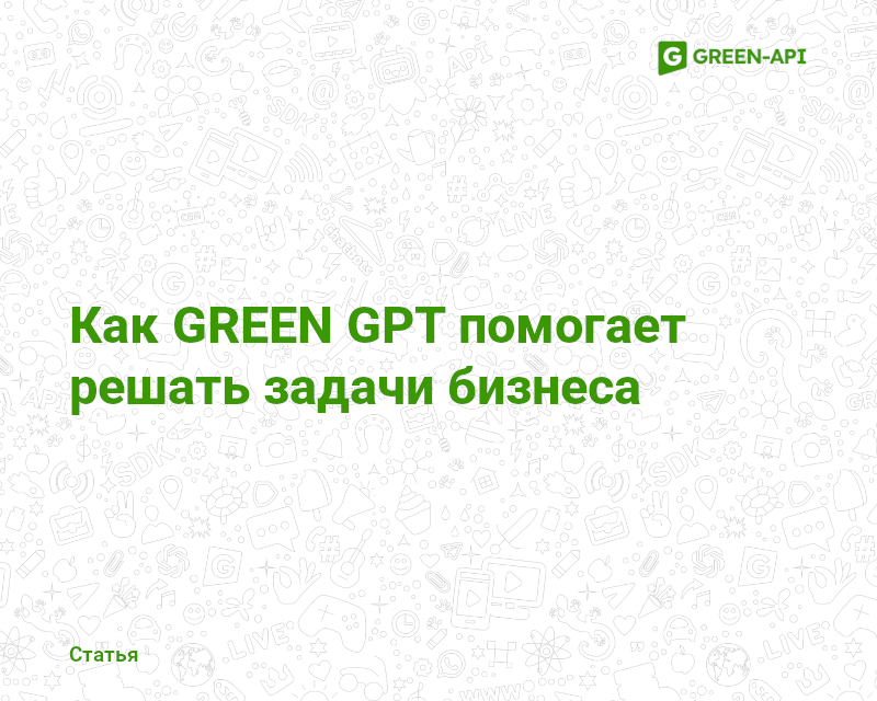 GREEN-API предоставляет комплексные решения для интеграции WhatsApp в бизнес-процессы. Узнайте, как наши решения могут помочь вашей компании автоматизировать поддержку и повысить эффективность – свяжитесь с нами для консультации.