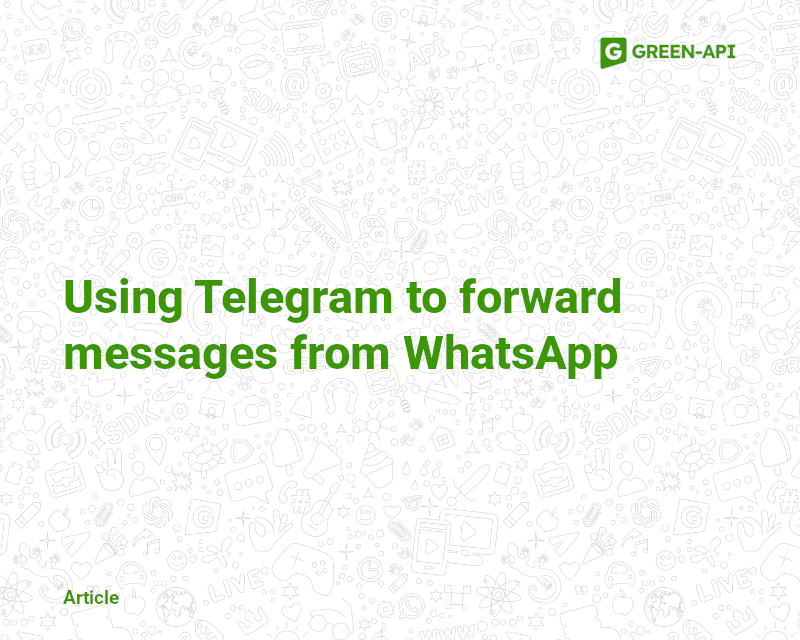Integration is based on the use of a GREEN-API instance, WhatsApp API, and a Telegram bot linked to that instance. The instance is created and authorized in your GREEN-API personal account via a QR code, providing a connection to the selected WhatsApp number. After that, the bot is configured to receive and send messages from the WhatsApp account connected to the Green-API instance in a Telegram chat with the bot.