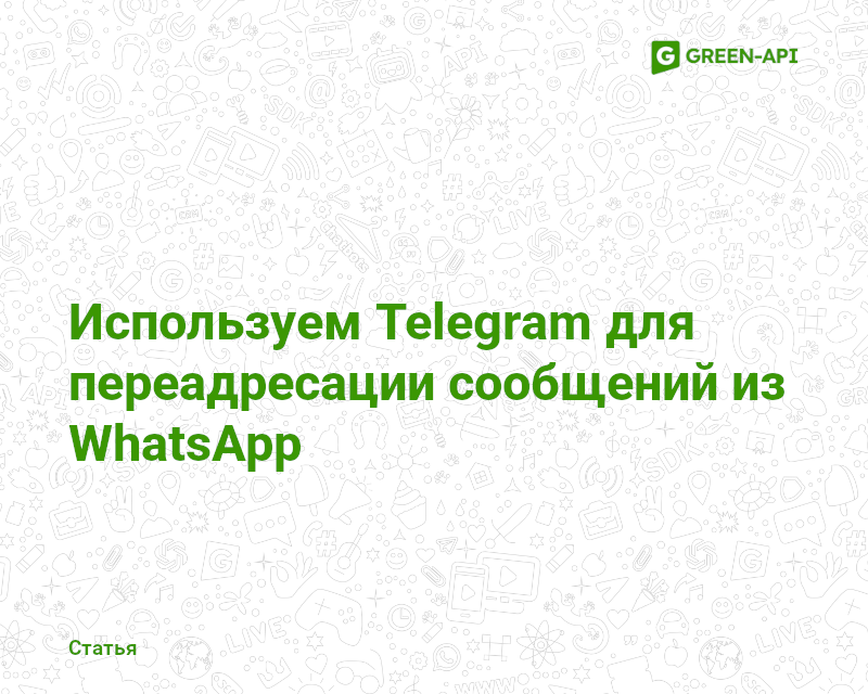 Интеграция основана на использовании инстанса GREEN-API, WhatsApp API и Telegram-бота, связанного с этим инстансом. Инстанс создается и авторизуется в личном кабинете GREEN-API через QR-код, обеспечивая связь с выбранным номером WhatsApp. После этого бот настроен чтобы получать и отправлять сообщения из WhatsApp-аккаунта, подключенного к инстансу Green-API, в телеграм-чат с ботом.