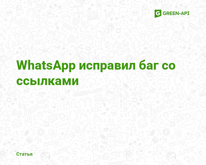 Мы в компании GREEN-API следим за новостями и сообщим вам о всех значимых новинках, а также постоянно работаем над внедрением новых функции в наш сервис, чтобы сделать вашу работу более удобной. Следите за нашим блогом, чтобы знать о новых и полезных функциях в WhatsApp!