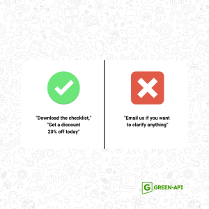 Mistake: Sending too many messages without benefit is annoying. With GREEN-API, you can automate your mailings by setting them for specific dates and times, so you get them when you need them and do not waste time manually sending messages.