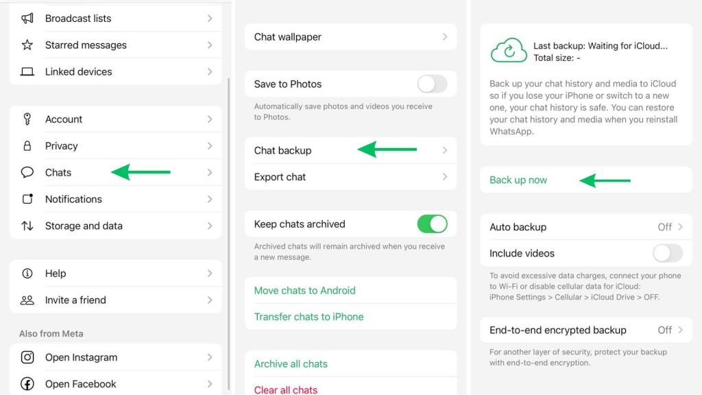 - Make sure the backup is saved to Google Drive (for Android) or iCloud (for iPhone) cloud storage