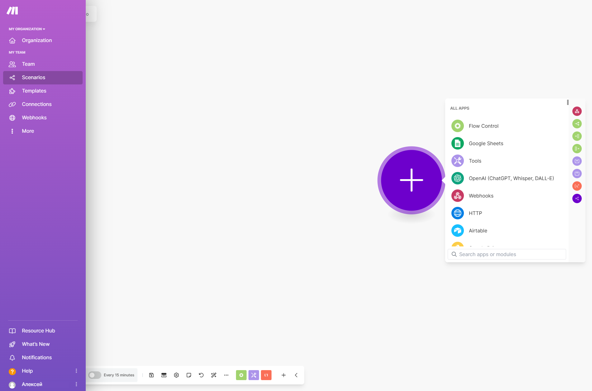 В качестве автоматизированных процессов в Make выступают сценарии (Scenarios).