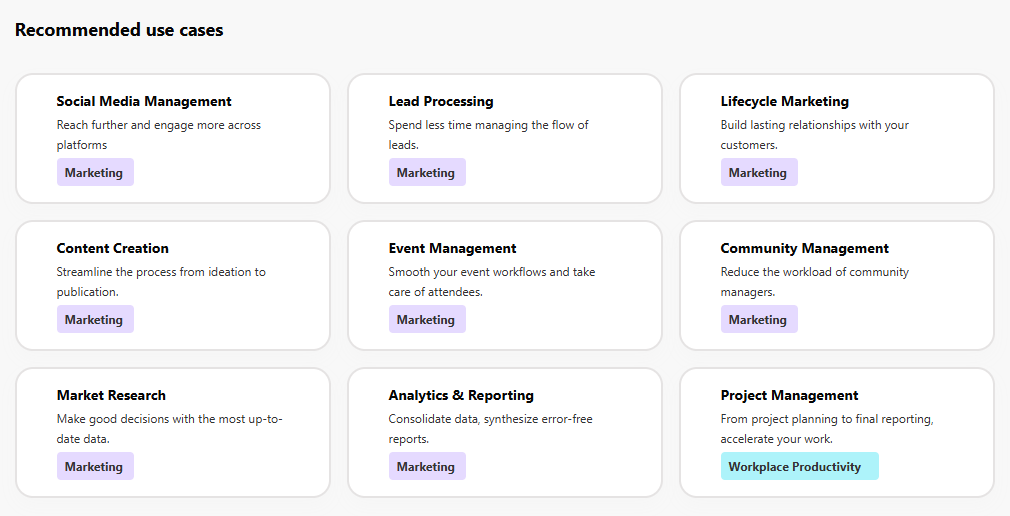 Также в Make есть своя документация, расположенная на вкладке Resource Hub. В ней приведены рекомендуемые варианты использования, такие как создание контента, аналитика и отчетность, управление проектом и другие варианты.