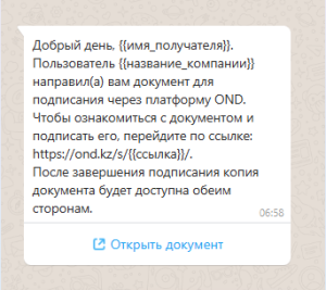 Чтобы подписать документ необходимо иметь мобильный номер и устройство с доступом в интернет. Отметим, что подписание электронных документов путем ввода кода из SMS или WhatsApp осуществляется в соответствии со статьями 395 и 396 Гражданского кодекса РК и имеет юридическую силу, если стороны согласовали его использование и оно соответствует требованиям законодательства.